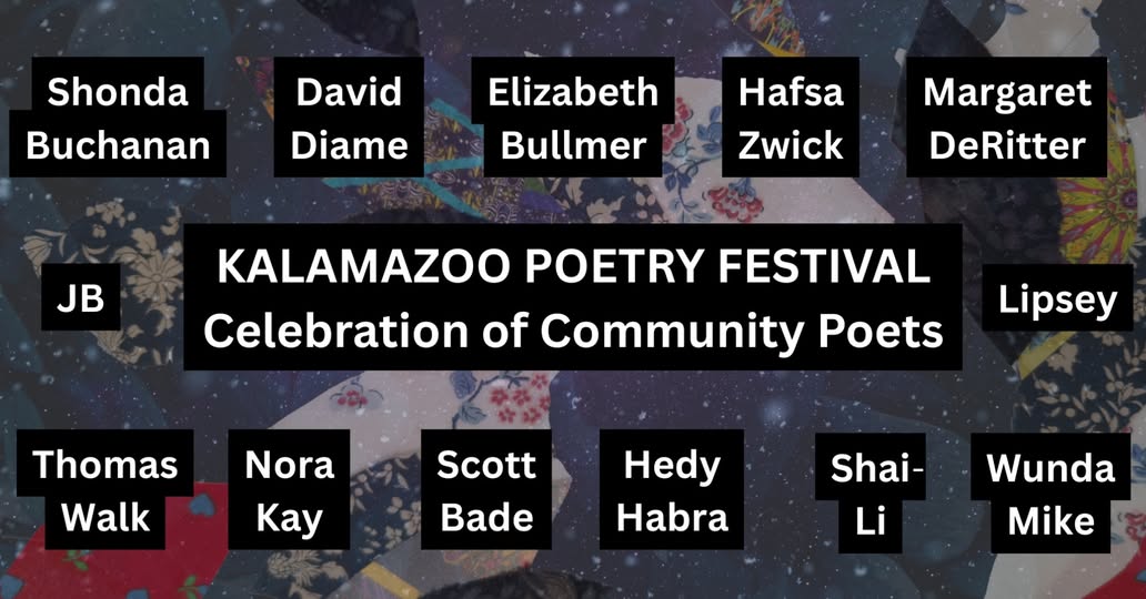 Thursday, April 9, at 6:30-8 pm. Honored and delighted to participate in the 2026 Kalamazoo Poetry Festival